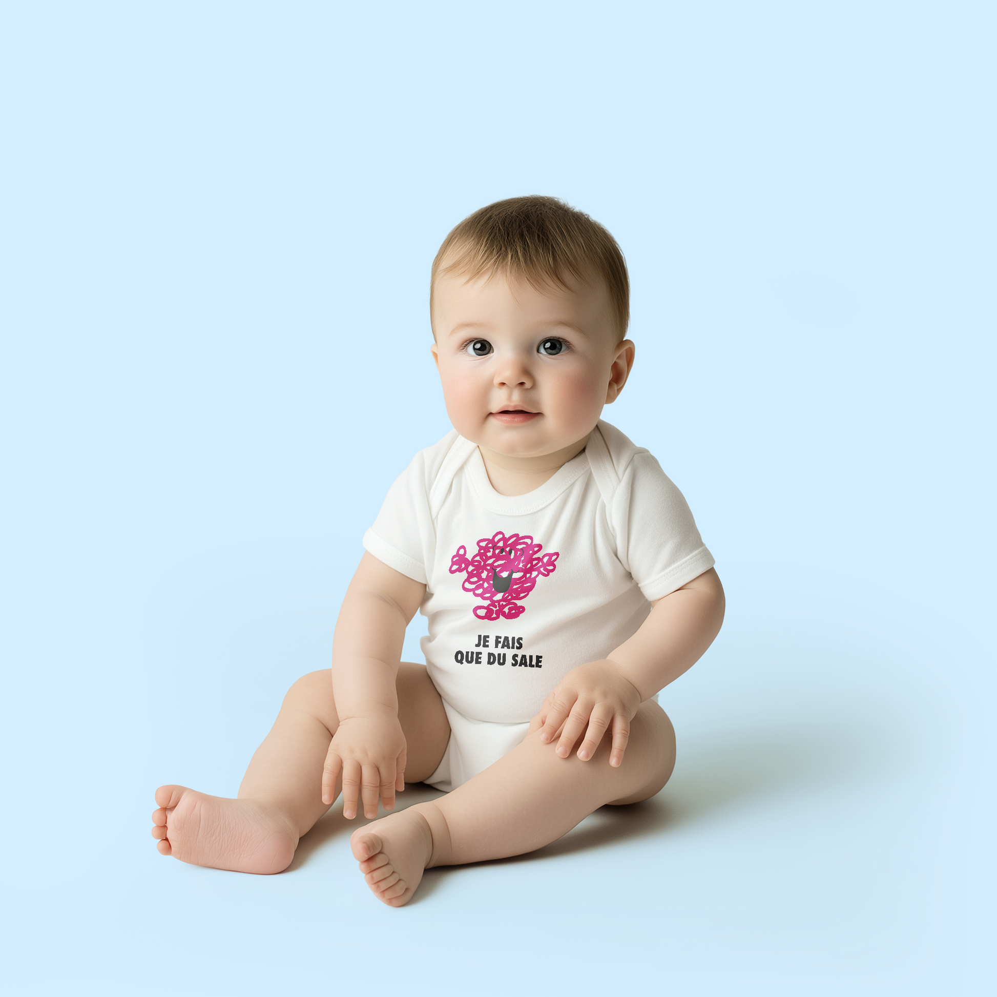 Body pour bébé Monsieur et Madame avec l'illustration "Je fais que du sale".
